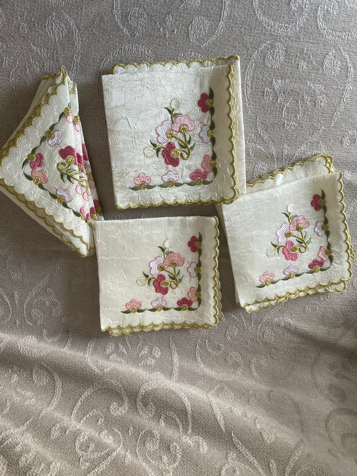Nakışlı Beyaz Pastel Renkli 12 parça örtü