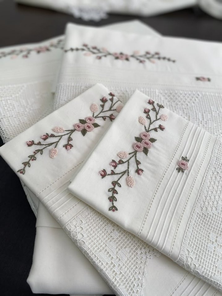 Yumuşak kumaştan, pastel renklerde çiçek nakışlı ve dokulu detaylı