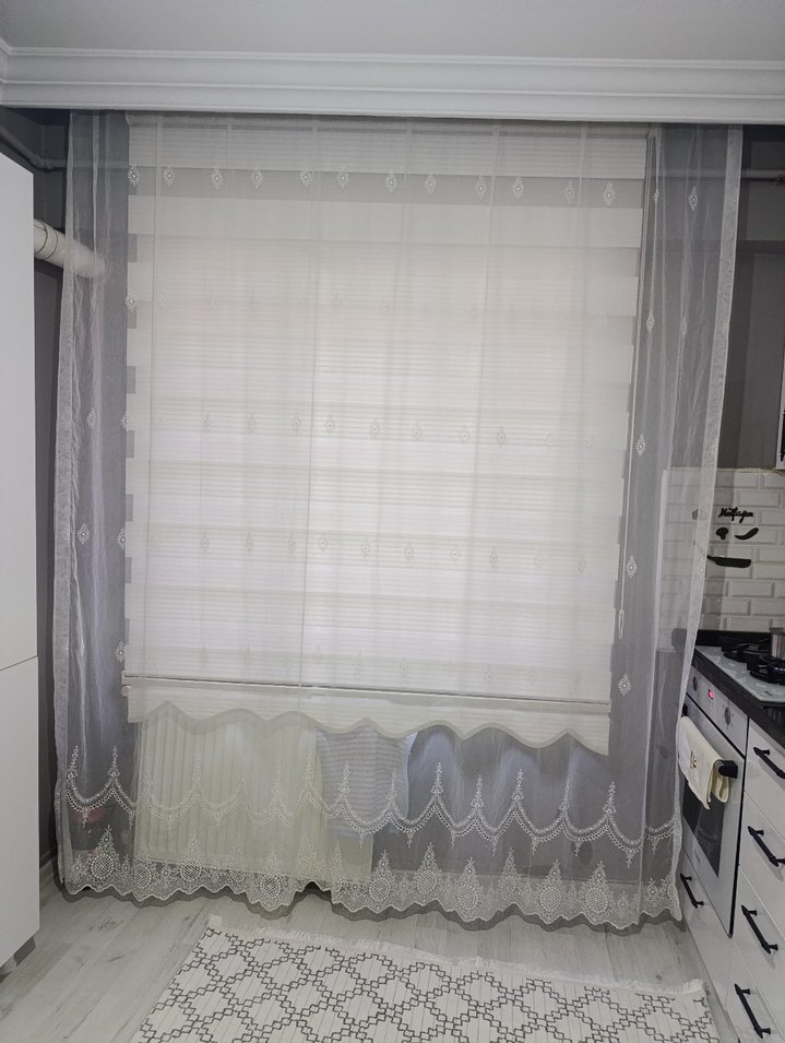 Nakışlı desenlere sahip beyaz klasik perde, hafif ve zarif bir görünüm sunar. Her odaya yumuşak bir dokunuş katar. eni uymadığı için satıyorum herhangi bir sorunu yok