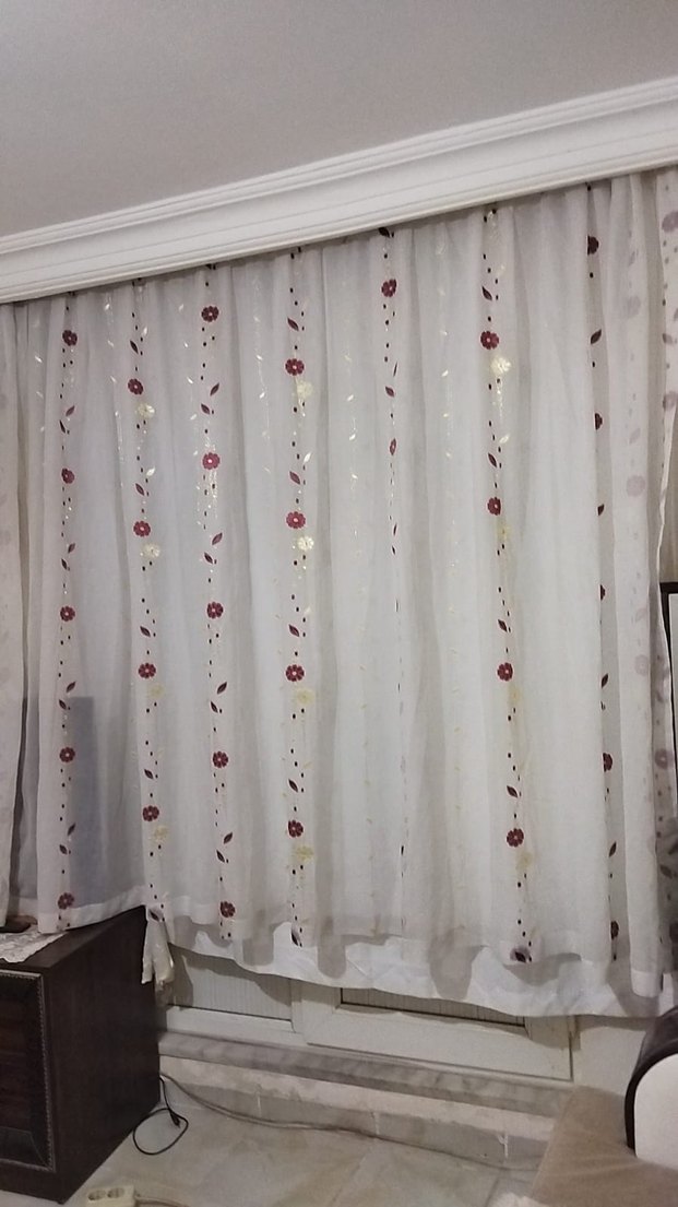 Nakışlı çiçek desenlerine sahip beyaz klasik perde, mekâna zarif bir dokunuş katıyor. eni 1.90 cm boyu 1.73 cm sorunsuzdur iade yoktur