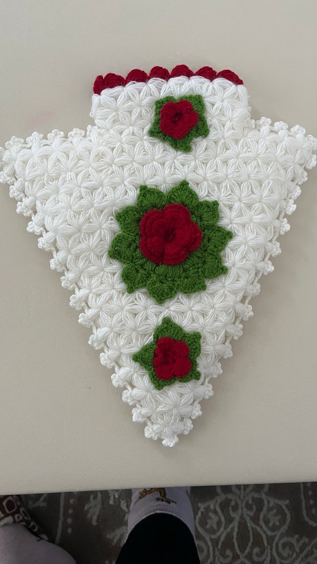 Nakışlı çiçek desenleriyle süslenmiş beyaz dokulu kumaştan renkli banyo lifi
