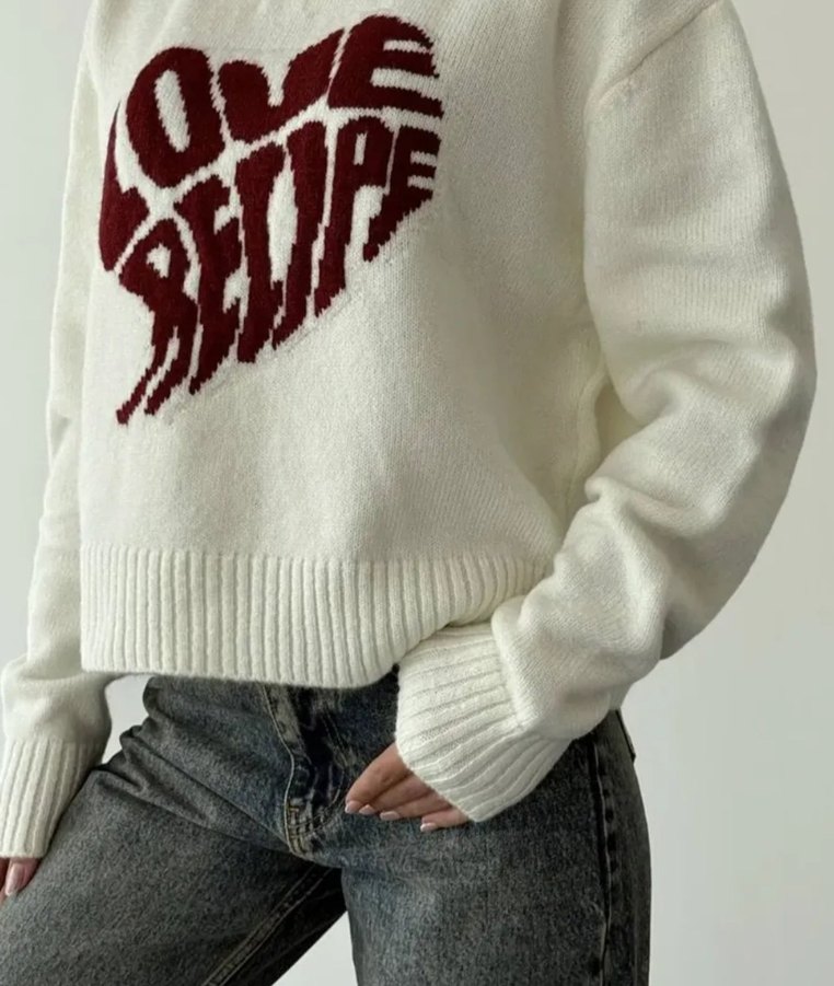 Nakışlı Beyaz Salaş Örgü Kadın Kazak