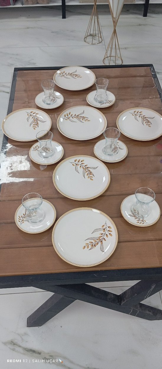 Nakışlı Beyaz Seramik Çay Seti