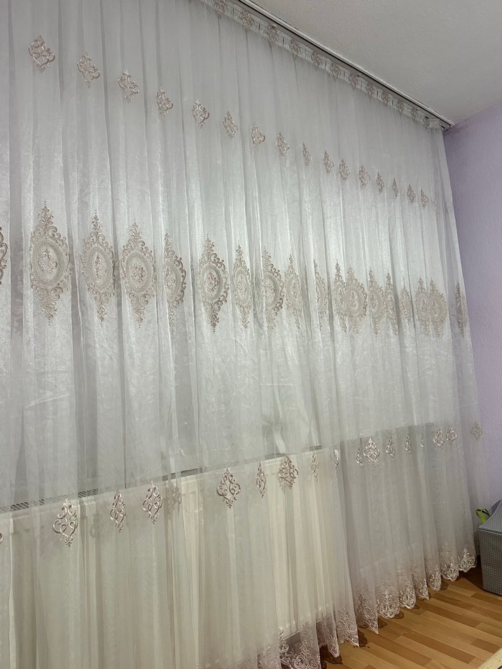 Nakışlı Beyaz Tül Perde en 3 boy 2.5