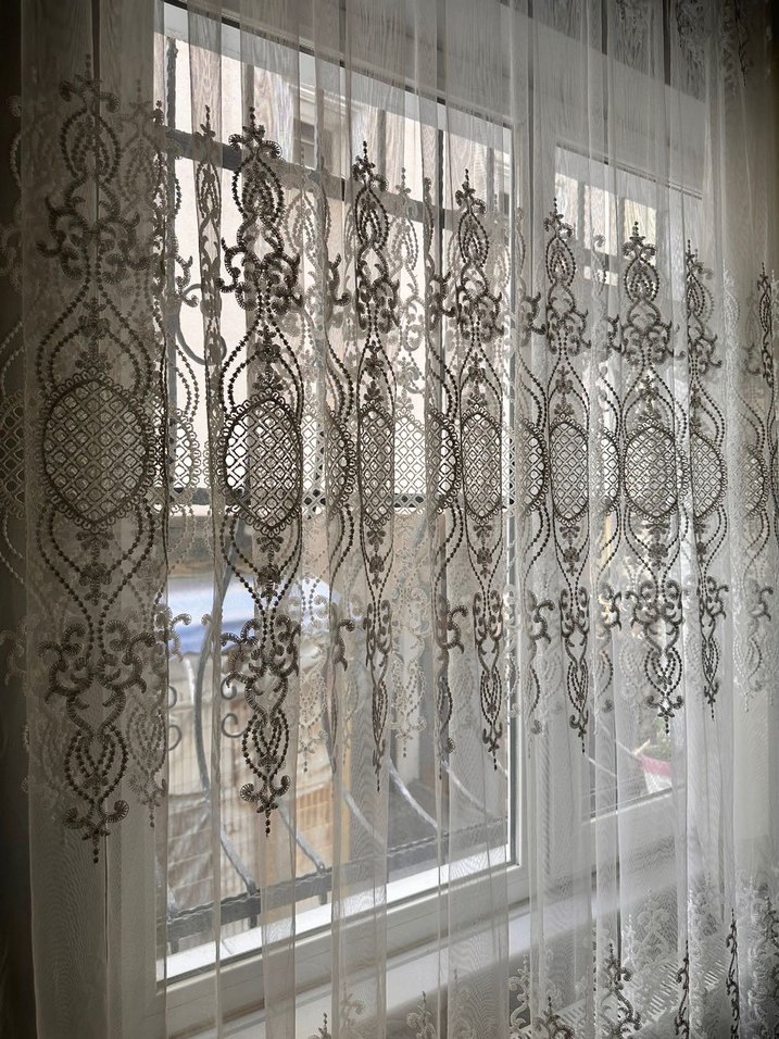 Nakışlı Beyaz Tül Perde özel dikim