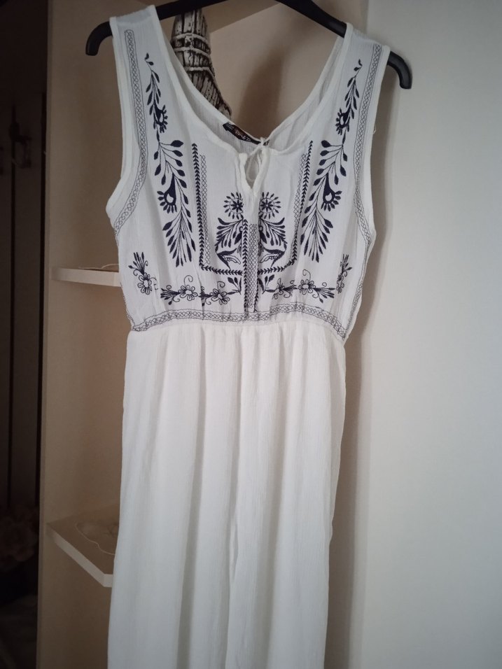 Nakışlı Beyaz Uzun Bohem Elbise