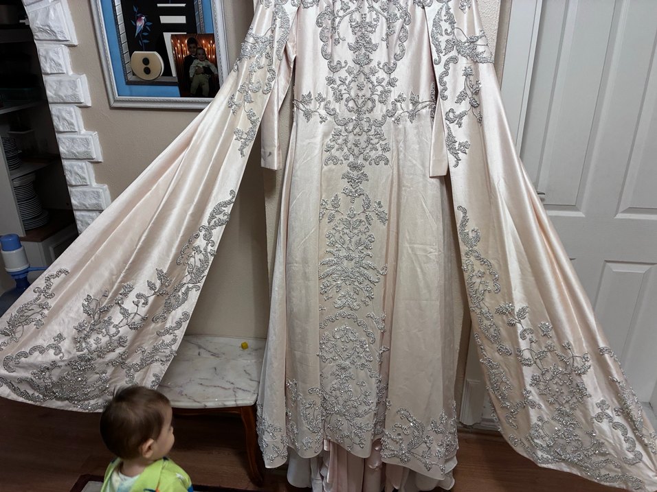 Nakışlı Beyaz Uzun Kollu Nikah Elbisesi sünnet elbisesi olarak