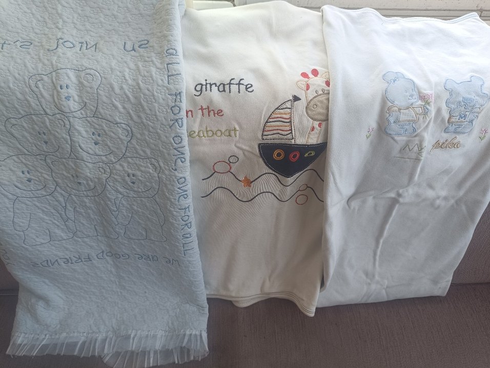 Nakışlı Beyaz ve Gri Çocuk Uyku Örtüsü
