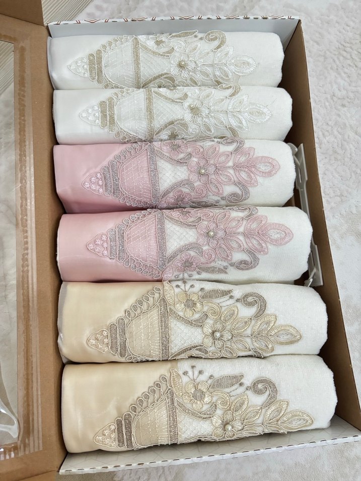 Nakışlı Beyaz ve Pastel Havlu Seti