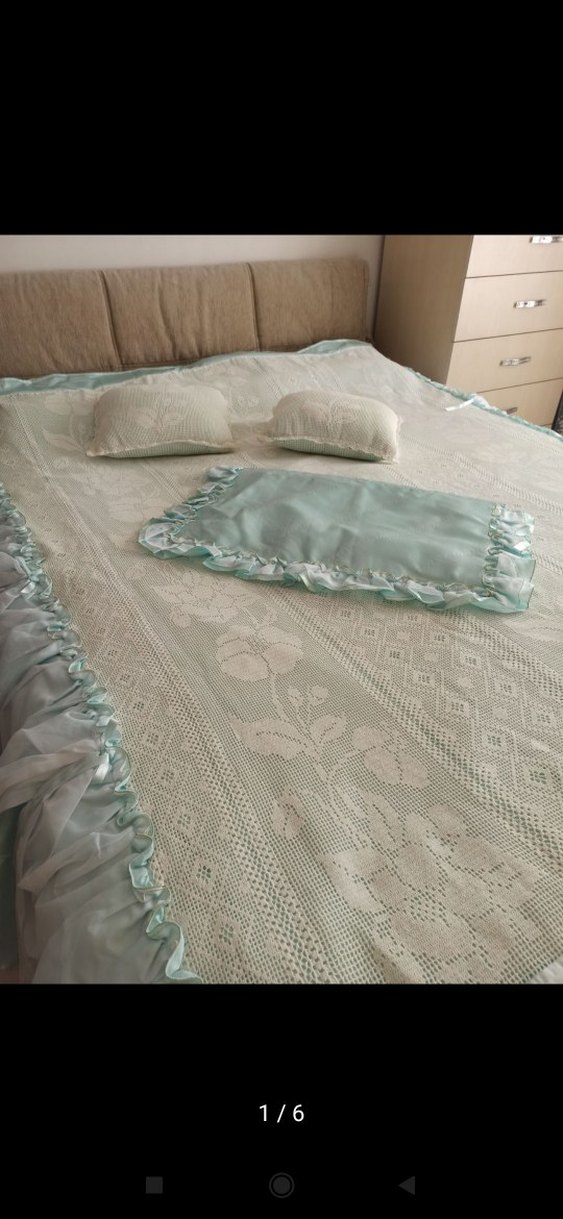 Nakışlı Beyaz ve Pastel Yatak Örtüsü