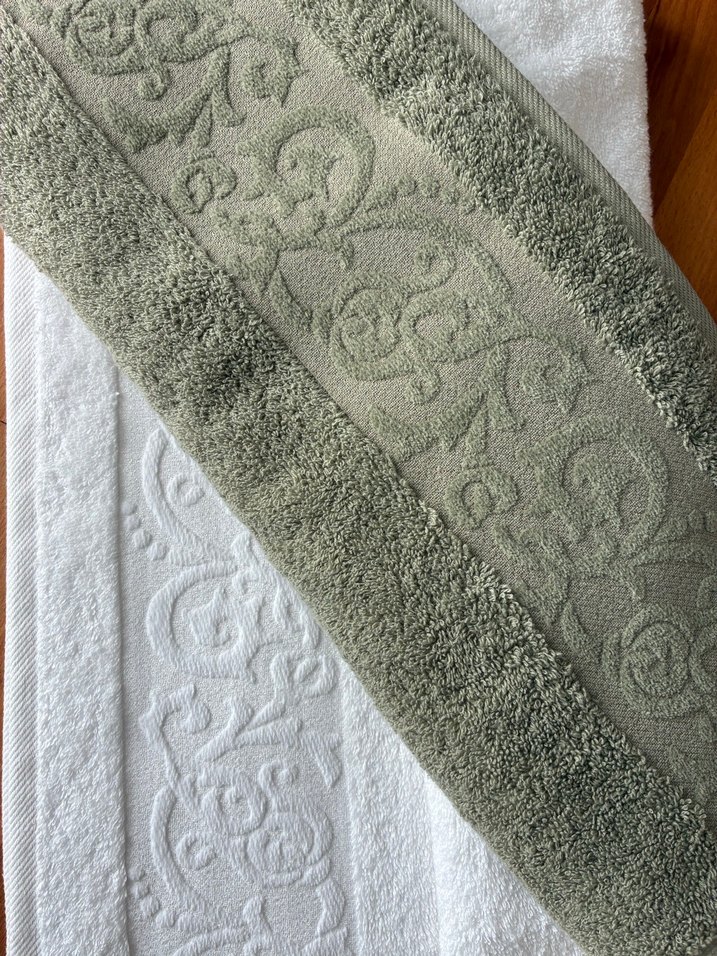 Nakışlı Beyaz ve yeşil Havlular