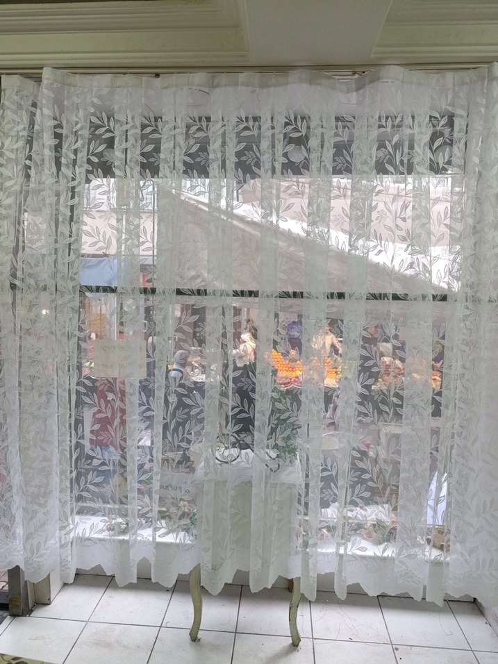 Nakışlı yaprak desenlerine sahip beyaz perde, klasik ve şık bir görünüm sunar. İnce ve hafif kumaşı ışığı yumuşak geçirir. en 265 boy 200