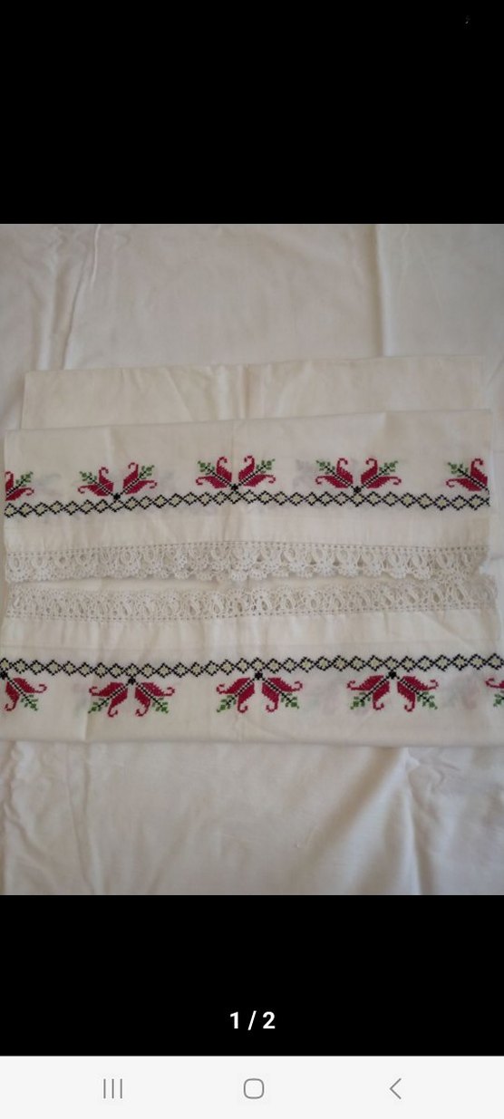 Nakışlı çiçek desenleri ve ince dantel süslemeleri olan beyaz işleme yastik , klasik tarzda. 1 metre iki ucu kanavice