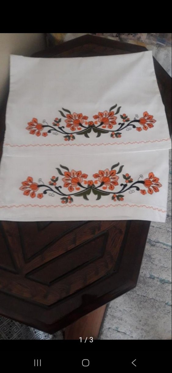 Turuncu çiçek nakışlı beyaz yastık kılıfları hiç kullanılmadı