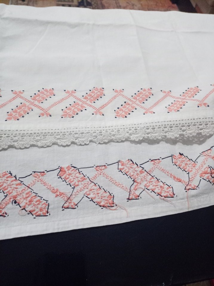 Bu beyaz yastık kılıfı kenarlarında pastel tonlarda geleneksel nakışlar ve dantel süslemeye sahiptir. Sofralara zarif bir dokunuş katar. ️