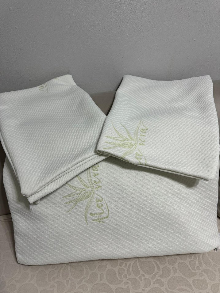 Hafif renkte, dokulu kumaş üzerinde zarif nakış desenlerine sahip beyaz yastık ve yastık kılıfı seti. ️