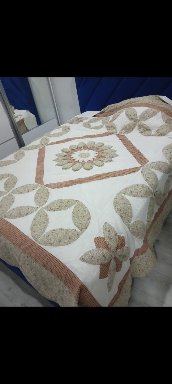 Nakışlı çiçek desenleri ve bej, açık kahverengi detaylarla süslenmiş beyaz yatak örtüsü, yatak odanıza yumuşak bir dekoratif dokunuş katar.