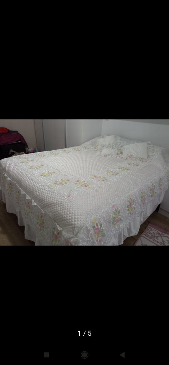 Yumuşak dokulu, pastel renklerde nakışlı beyaz yatak örtüsü, yatak odasına zarif bir dokunuş katıyor. ️