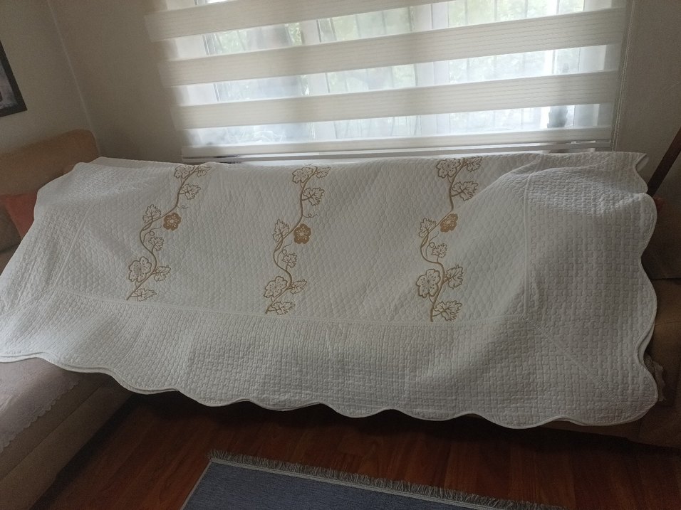 Nakışlı Beyaz Yatak Örtüsü