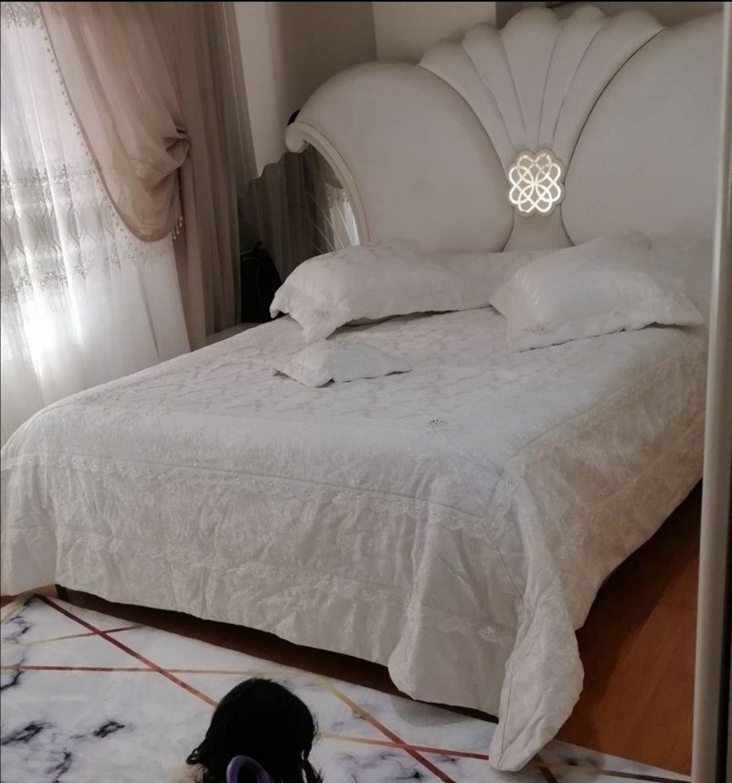 Hafif ve yumuşak kumaştan, zarif nakışlı beyaz yatak örtüsü, yatak odasına ince bir şıklık katıyor. ️