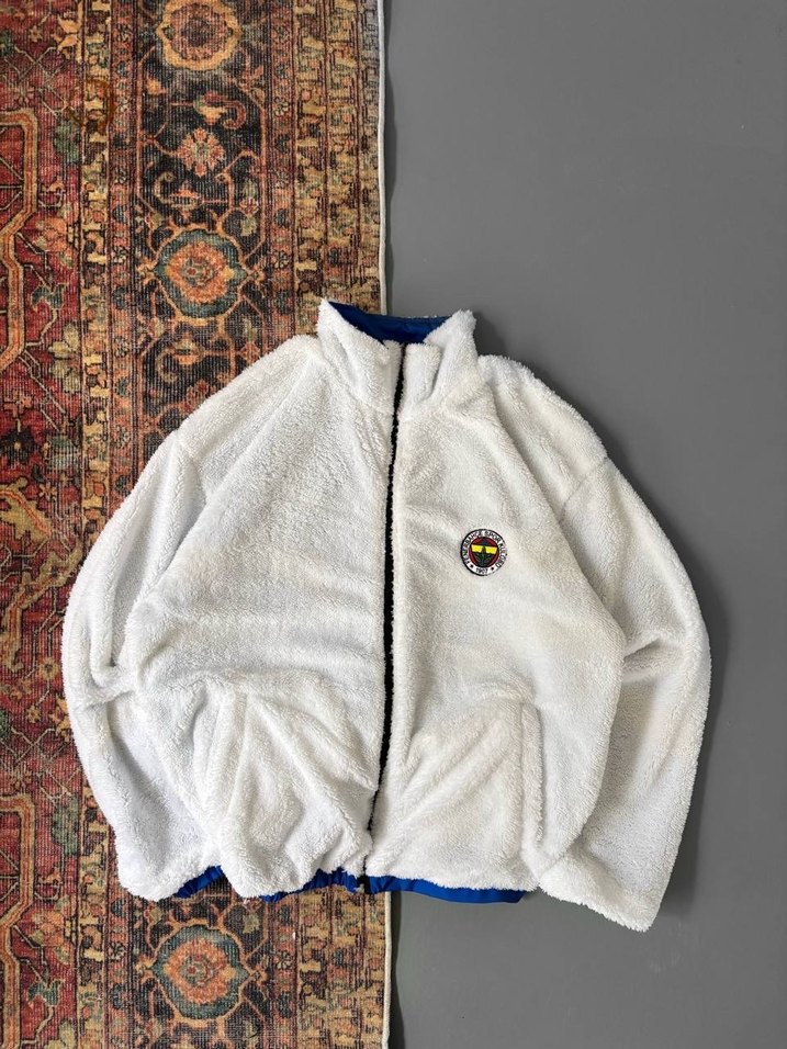 Nakışlı Beyaz Yumuşak Fermuarlı erkek Fenerbahçe Ceket
