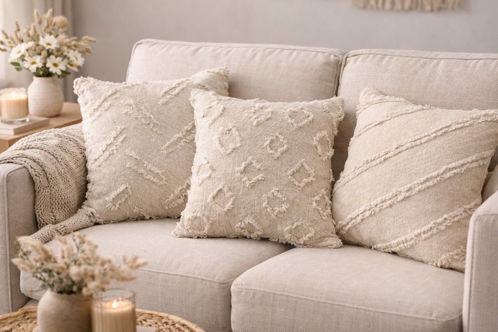 Nakışlı Bohem Bej Dekoratif Yastık