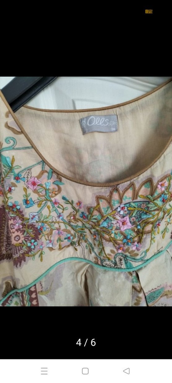 Nakışlı, bej renkli, kolsuz pamuklu terletmeyen kumaşa sahip, salaş kesime ve İpek nakış işleme detaya sahiptir. Bohem tarz için uygundur. 38- 40 bedene uygundur.