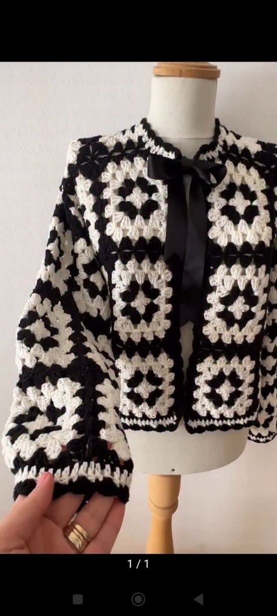 Bohem tarzda, koyu beyaz ve siyah renklerde nakışlı örgü hırka. Notlu yaka, uzun kol ve bol kesimle rahat bir görünüm sunar. ✨