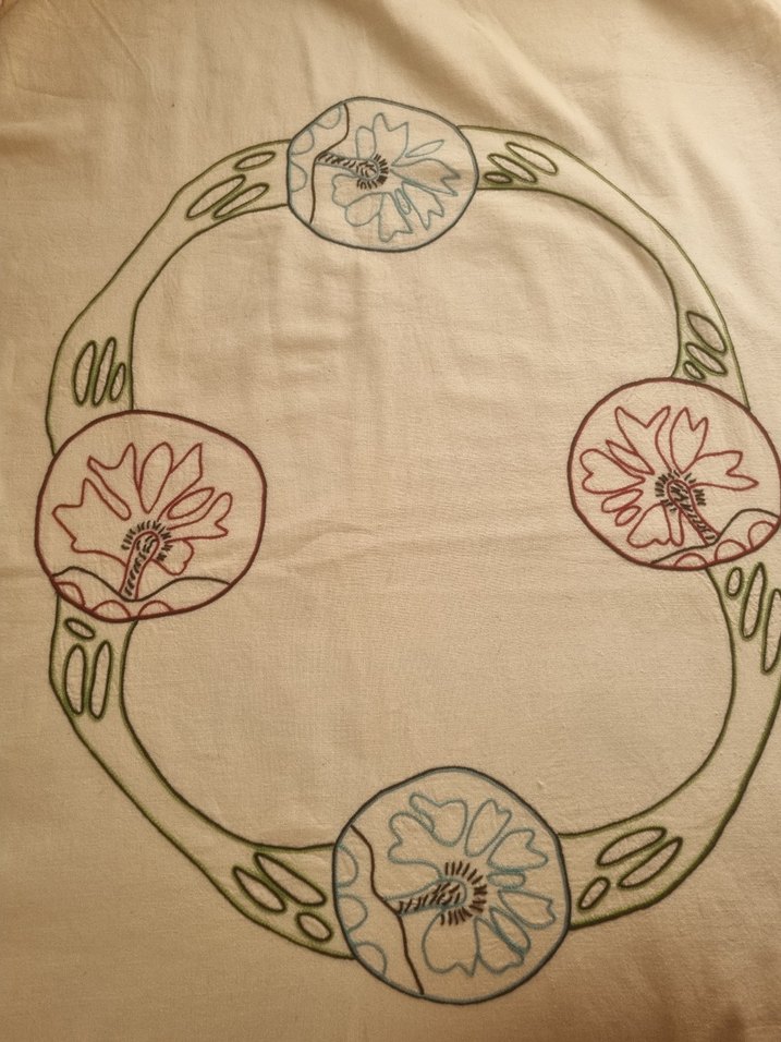 Bohem tarzda, nötr zemin üzerinde hafif çok renkli nakışlı çiçek desenli kılıf her türlü kullanımı olur