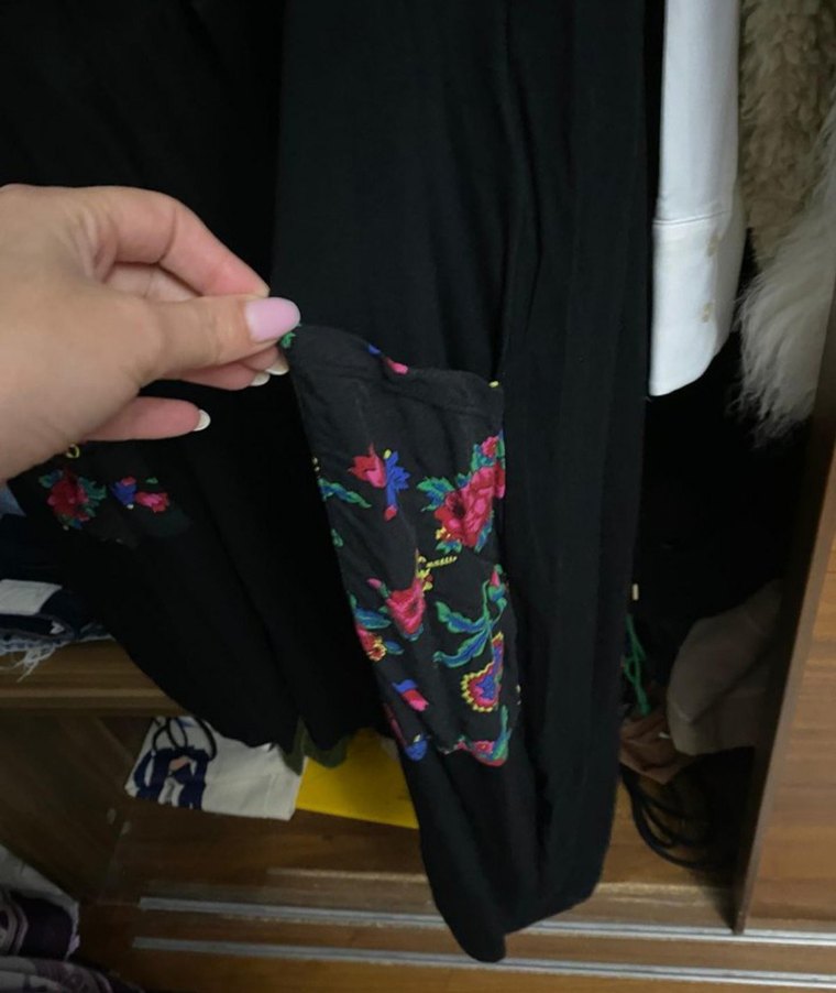 L beden X,l ye de olur çok rahat cepli salaş Rahat kesim, midi boy kadın , koyu çok renkli nakışlı desenler ve fermuarlı detaylarla bohem tarzda.