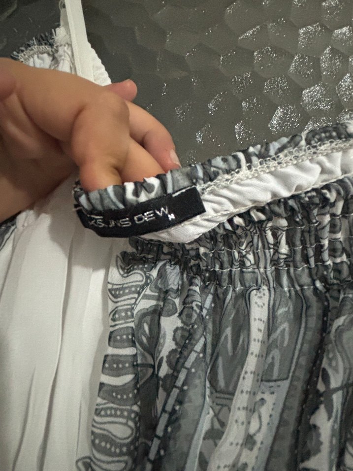 Nakışlı desenlere ve fermuarlı detaya sahip bol kesim şifon elbise. Yumuşak kumaştan, midi boyda ve gri renkte, günlük kullanıma uygun.