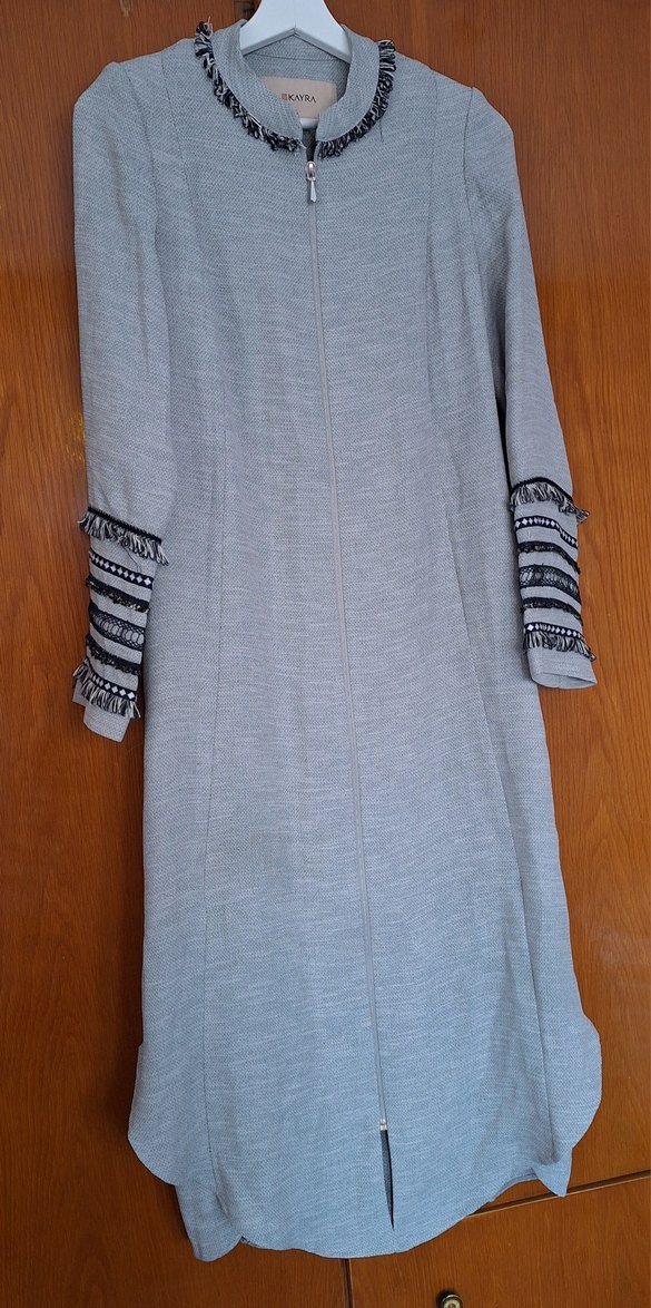 Bu uzun drapeli tasarımı, nakışlı kol detayları ve kesik yaka ile bohem tarzını yansıtıyor. Rahat kesim ve uzun kolludur.