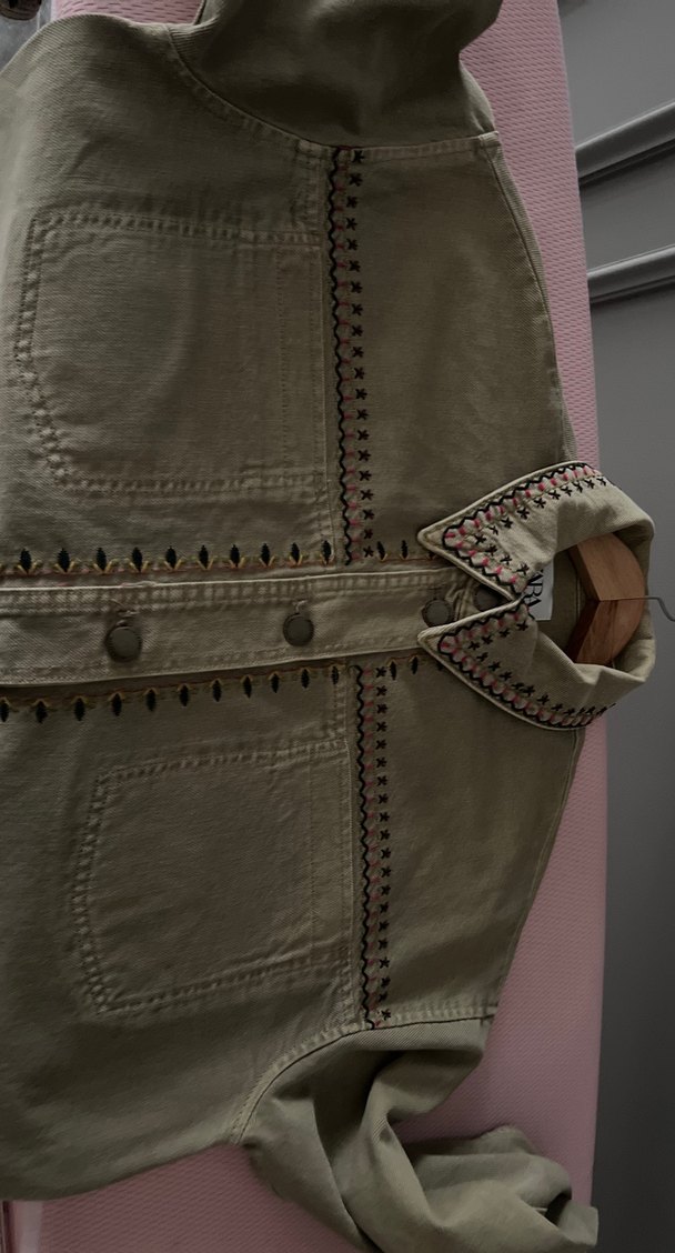 Yeşil renkte nakış detaylı bohem kadın ceket. Düğmeli, günlük kullanıma uygun rahat kesim. Kumaşı kalın değil ince kot. Üste oturmayan kesim. Hiçbir problemi yoktur bir kaç kez giyilmiştir. Boy uzunluğu 55 santim.