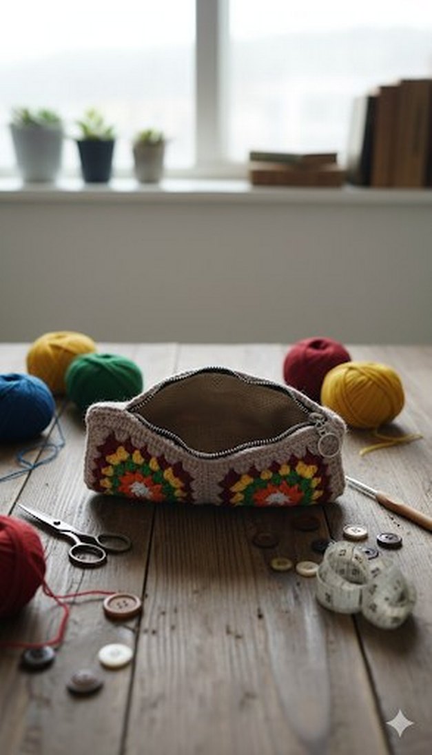 Nakışlı, renkli desenlere sahip örme kumaştan yapılmış bohem tarzda, fermuarlı kadın el çantasıdır. Gri tonları günlük kullanım için uygundur.