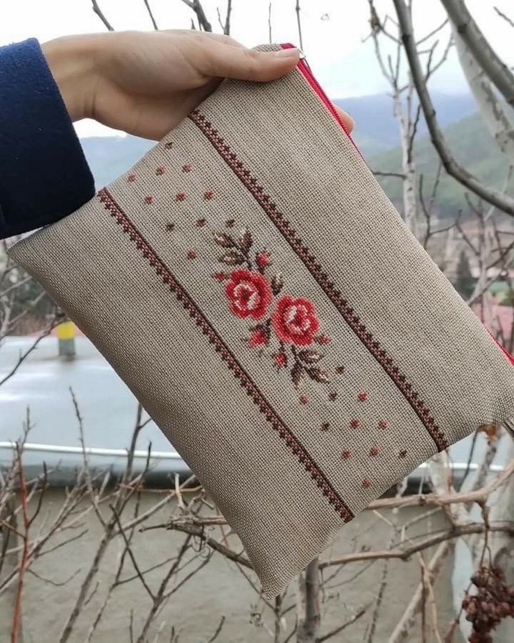 Nakışlı çiçek desenli, fermuarlı açık bej tekstil bohem kadın el çantası, günlük kullanım için uygun . İstediğiniz ölçü ve renklerde yapabilirim