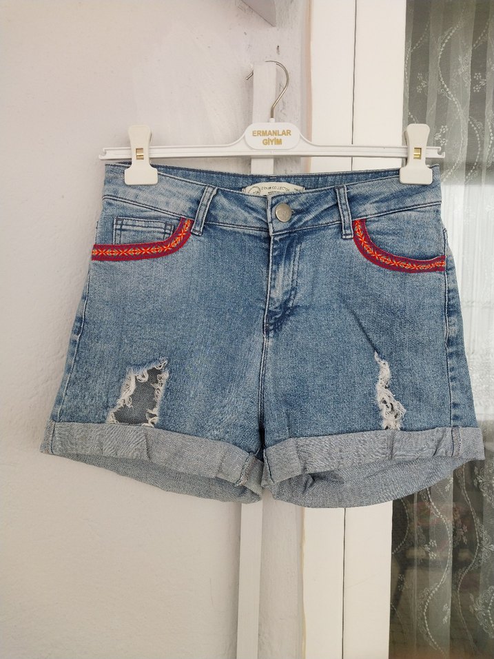 Nakışlı Bohem Kadın Mini Kot Şort