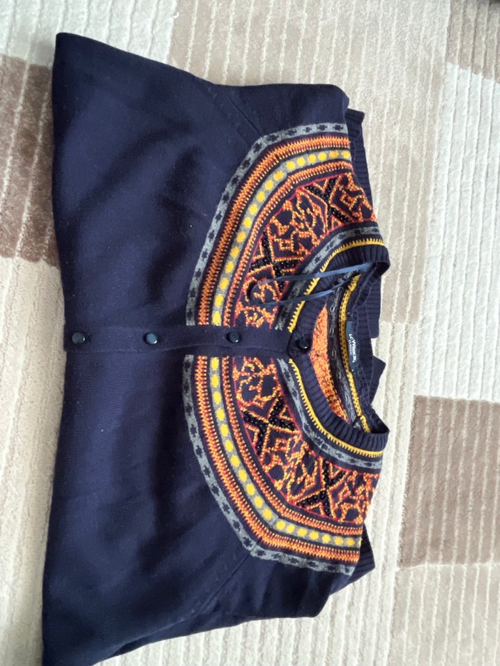 Nakışlı desenlere sahip, bohem tarzda, uzun kollu, normal kesim, triko kumaştan kadın kazak. Günlük kullanıma uygundur.