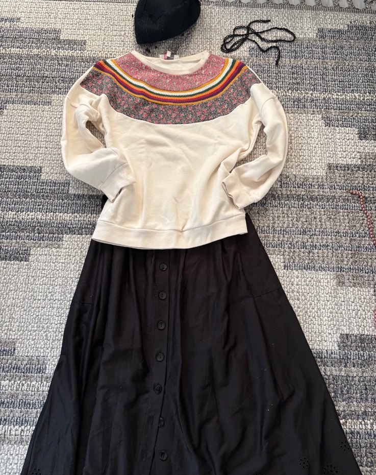 Şık etnik yaka detaylı rahat kazak iki kol arası 53 cm boy60 cm