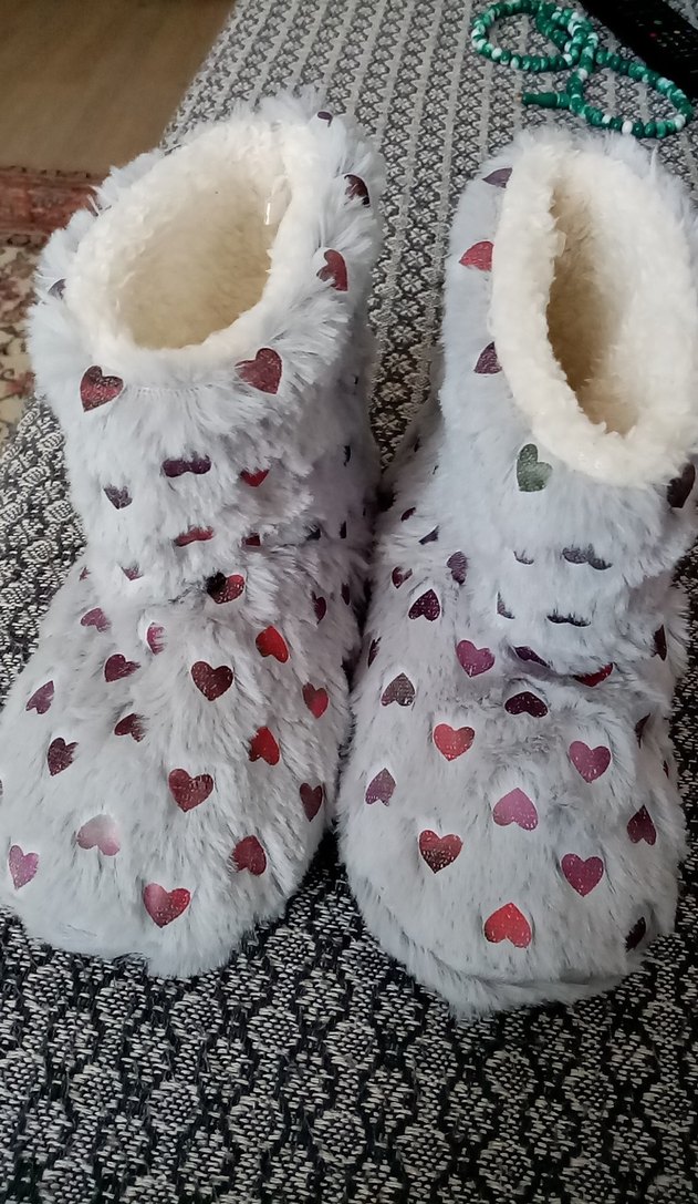 Nakışlı renkli kalp desenleri ve yumuşak kürk detaylarıyla bohem tarzda kız ev terliği.