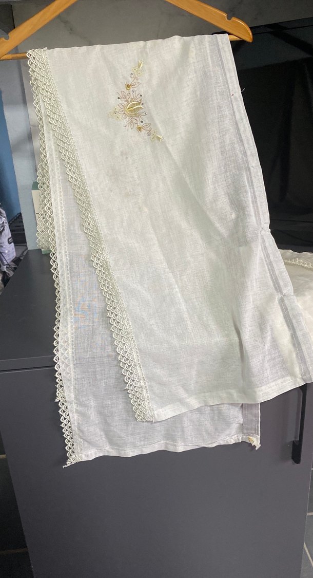 Krem tonu renkte, nakışlı ve dantel kenarlı bohem tarzda mutfak perdesi .camınıza zarif bir dokunuş katar ütüleyip çok güzel kullanabilirsiniz sorunsuz hiçbirlerinde bişey yoktur . ️