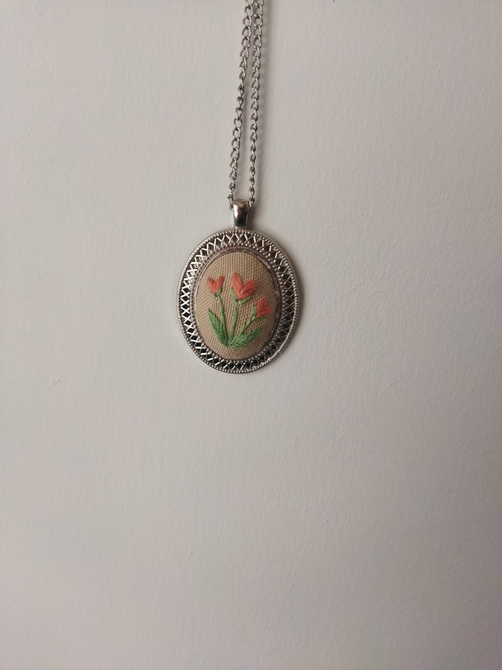 Bej renkte, renkli nakışlı çiçek deseni ve boncuk detaylı, vintage tarzı bohem midi uzunlukta kolye. #kanaviçe #nakışlıkolye #kolye #vintage #yeniürün #takı #kanaviçetakı