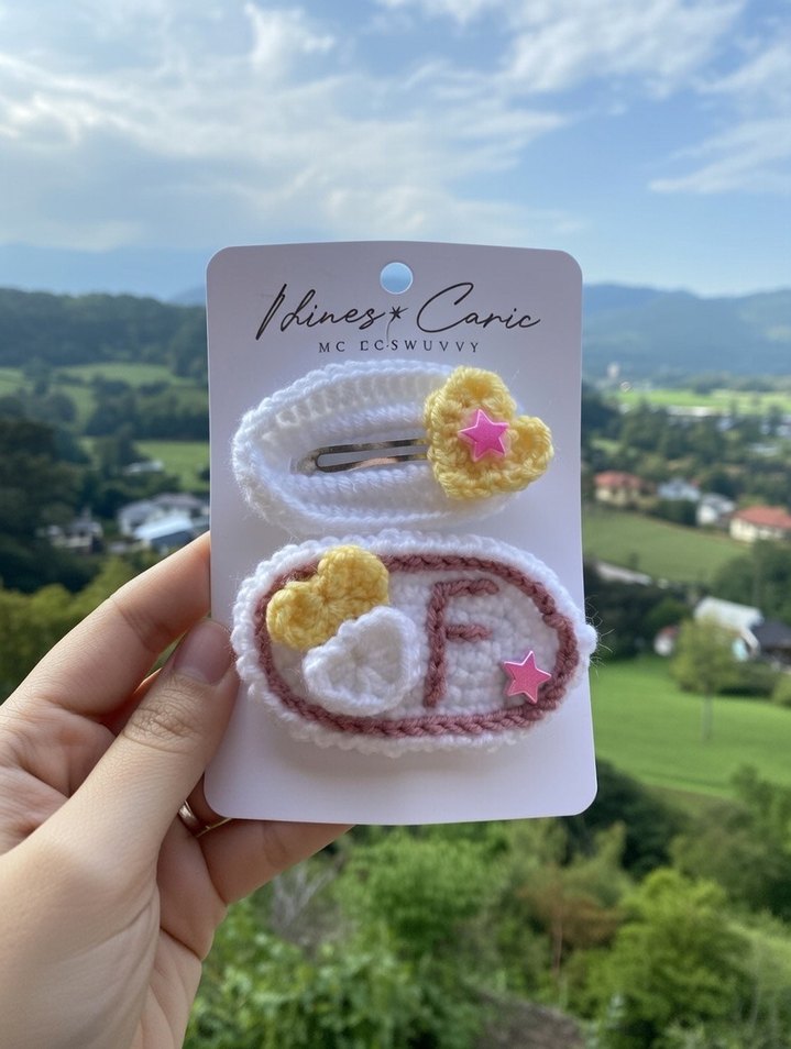 İki adet nakışlı, pastel renklerde örgü çocuk toka seti. Bohem tarzında, yumuşak dokulu ve sade tasarımlı. Kişiye özel hazırlanır