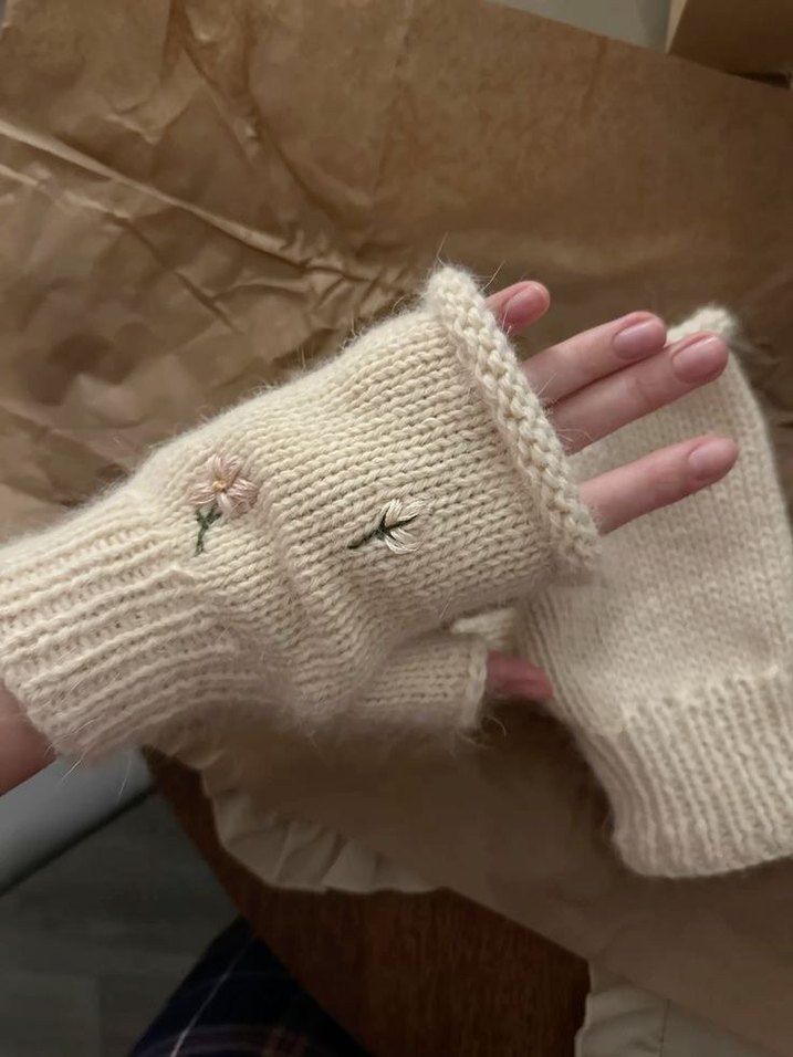 Yumuşak, nakışlı örgü kadın eldivenleri, çok rahattır, eldivenin ve üzerindeki çiçeklerin rengini zevkinize göre değiştirebiliriz. Parmaksız tasarımı hareket özgürlüğü sağlar. El emeğidir. (sipariş verdikten sonra bir hafta örgü ve kargoya verim süreci vardır)