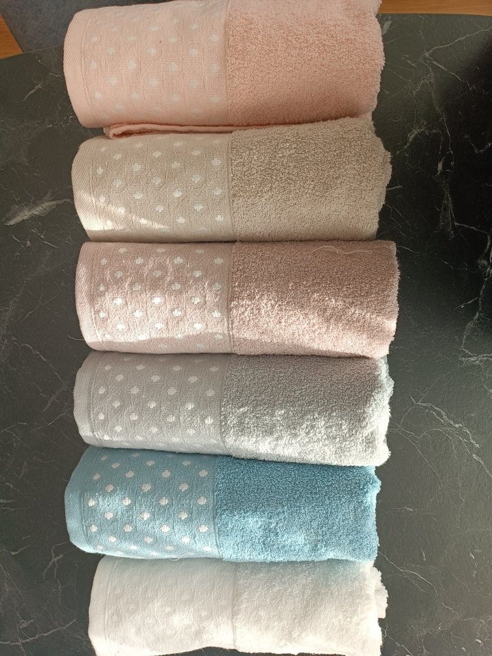 Nakışlı desenlere sahip, pastel ve beyaz renklerde yumuşak dokulu bohem tarzı havlular. Banyonuzda hafif ve şık bir dokunuş sağlar.