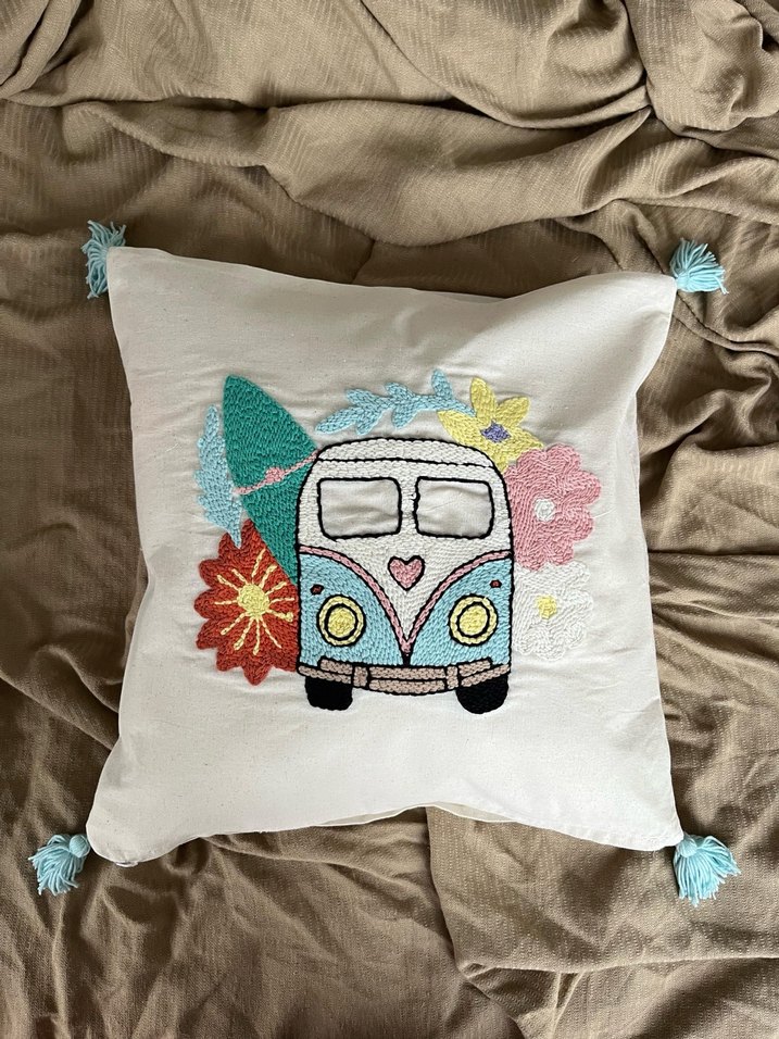 Nakışlı Bohem Pastel Renkli Punch Kırlent Kılıfı