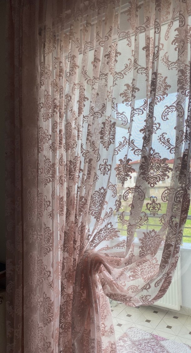 Nakışlı Bohem Pembe Tül Perde