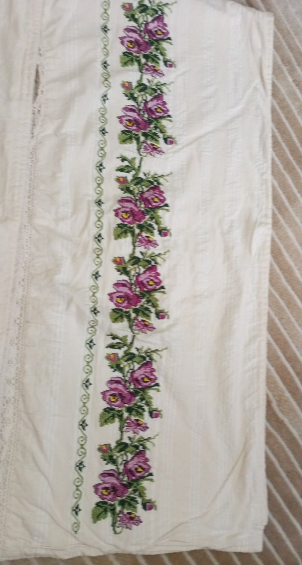 Pastel çiçek nakışlı, dokulu kumaşa sahip bohem tarzı krem çift kişilik işlemeli pike bir defa yıkandı iki kat keten kumaş