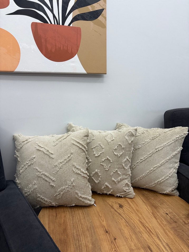 Yumuşak kumaş üzerinde nakışlı desenlere sahip bej bohem tarzı kırlentler, oturma alanınıza doku katmak için ideal. ️40x40 ölçülerin dedir almak istediğiniz adeti ve modeli belirttim renk kemik rengi