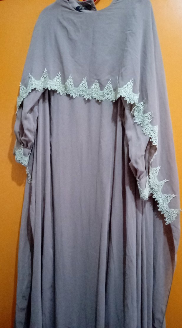 Nakışlı detaylara sahip, drapeli ve bol kesim uzun bej kadın elbisesi. düğünler için uygun. hiç giyilmedi