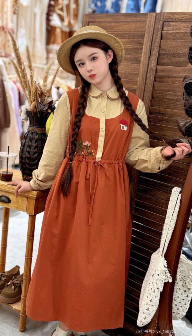 Kahverengi pamuklu uzun elbise, bol kesim, uzun kollu ve sırt dekolteli. Nakış detaylarıyla bohem tarzda rahat bir şıklık sunar. Günlük kullanım için uygundur.